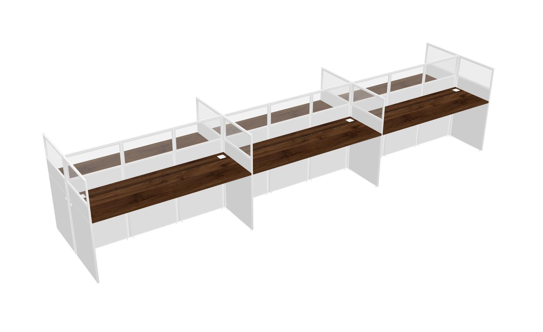 Columbia Walnut Shared Rectangular Office Cubicle Panel System For 6 Persons