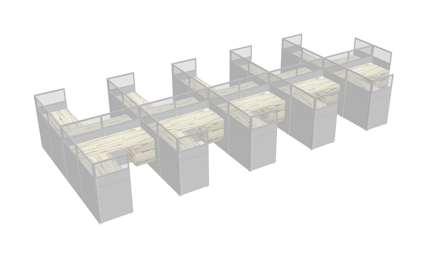 Heinne Holz Shared L-Shaped Office Cubicle Panel System With Hanging Drawers For 10 Persons
