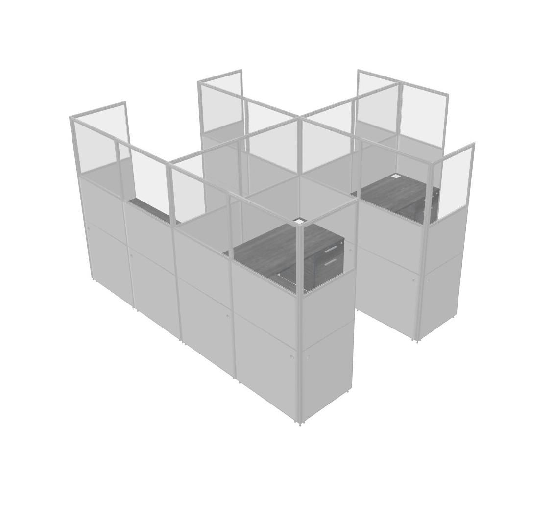 Grey Shared L-Shaped Office Cubicle Panel System With Hanging Drawers For 4 Persons