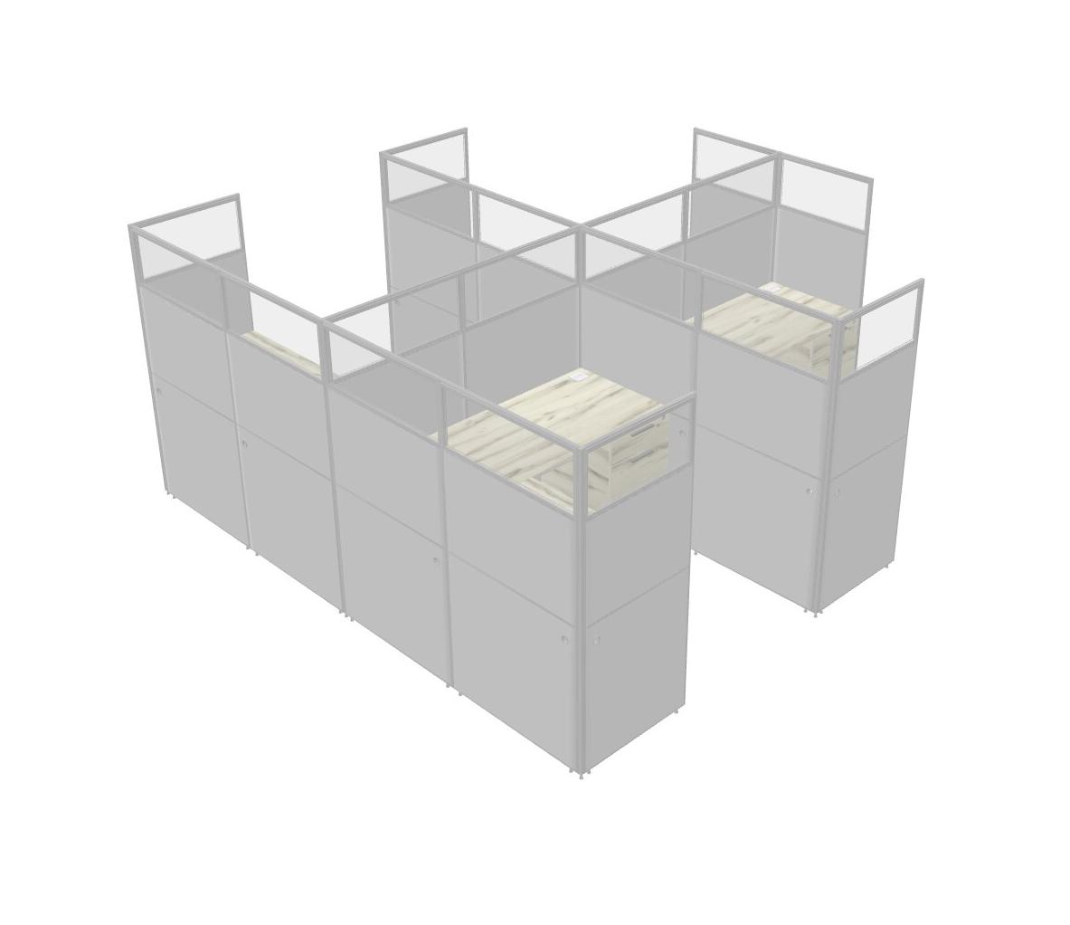 Heinne Holz Shared L-Shaped Office Cubicle Panel System With Hanging Drawers For 4 Persons