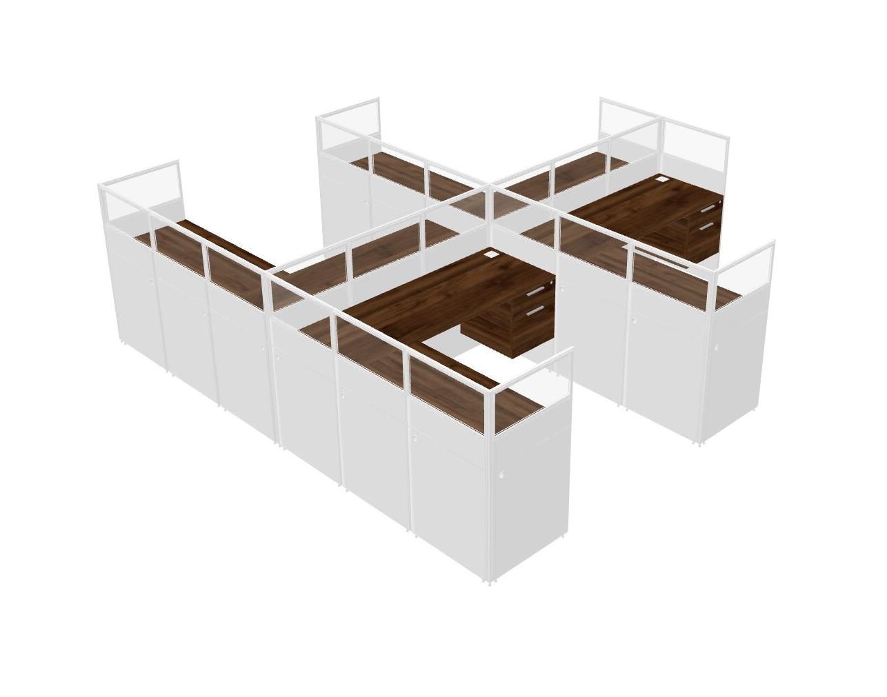 Columbia Walnut Shared L-Shaped Office Cubicle Panel System With Hanging Drawers For 4 Persons