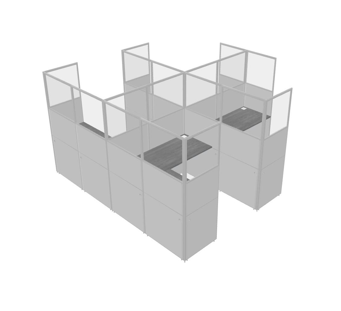 Grey Shared L-Shaped Office Cubicle Panel System For 4 Persons