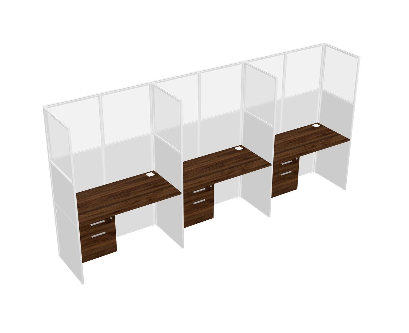 Columbia Walnut Shared Rectangular Office Cubicle Panel System With Hanging Drawers For 3 Persons
