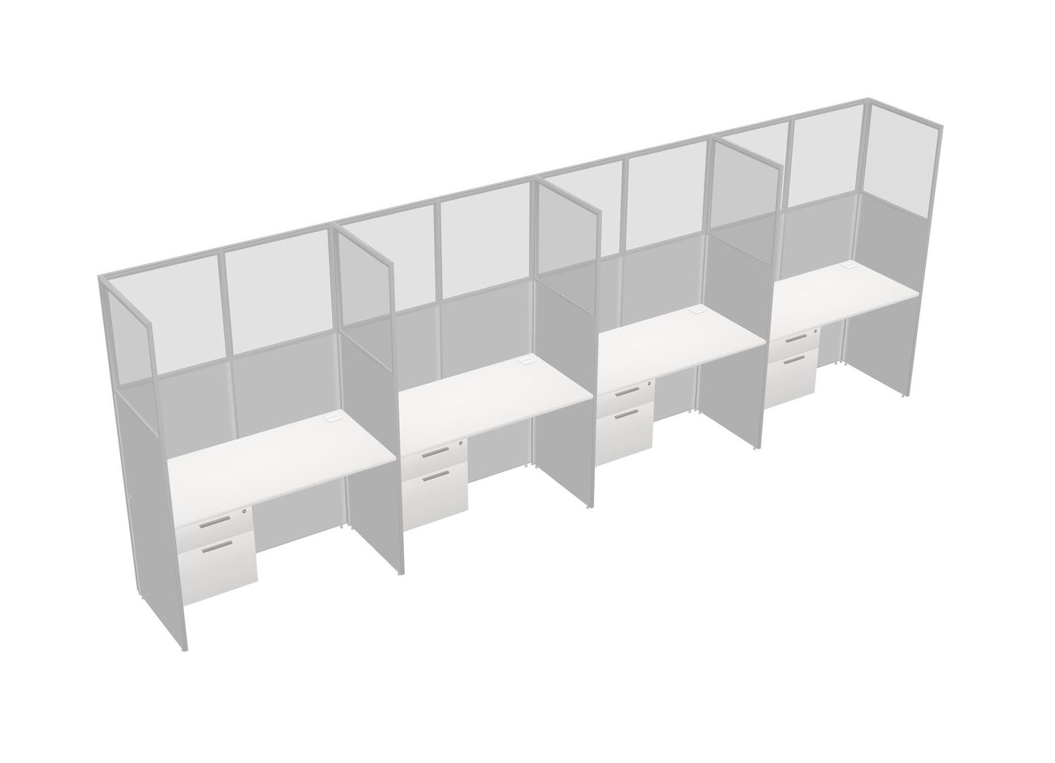 White Shared Rectangular Office Cubicle Panel System With Hanging Drawers For 4 Persons