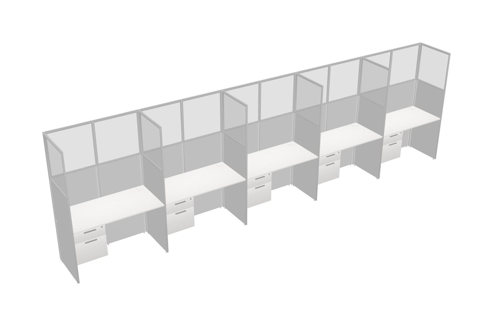 White Shared Rectangular Office Cubicle Panel System With Hanging Drawers For 5 Persons