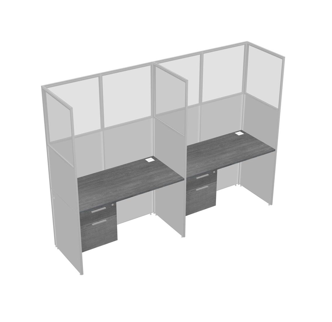 Grey Shared Rectangular Office Cubicle Panel System With Hanging Drawers For 2 Persons