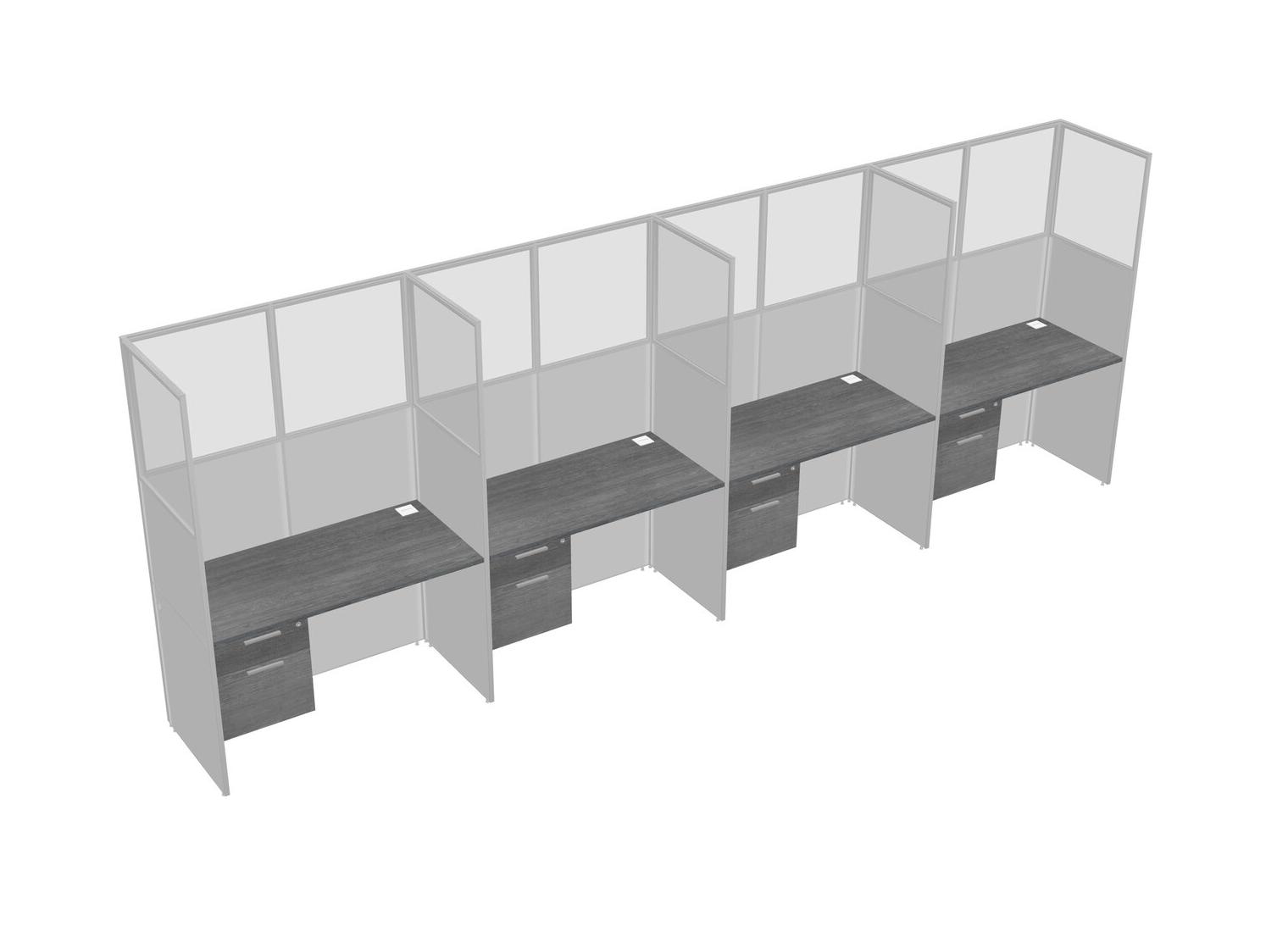 Grey Shared Rectangular Office Cubicle Panel System With Hanging Drawers For 4 Persons