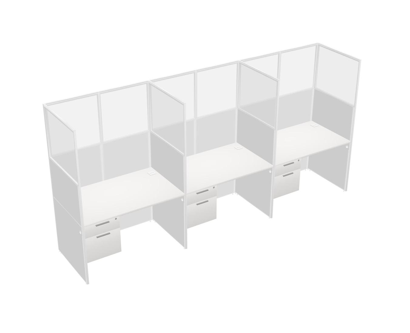 White Shared Rectangular Office Cubicle Panel System With Hanging Drawers For 3 Persons