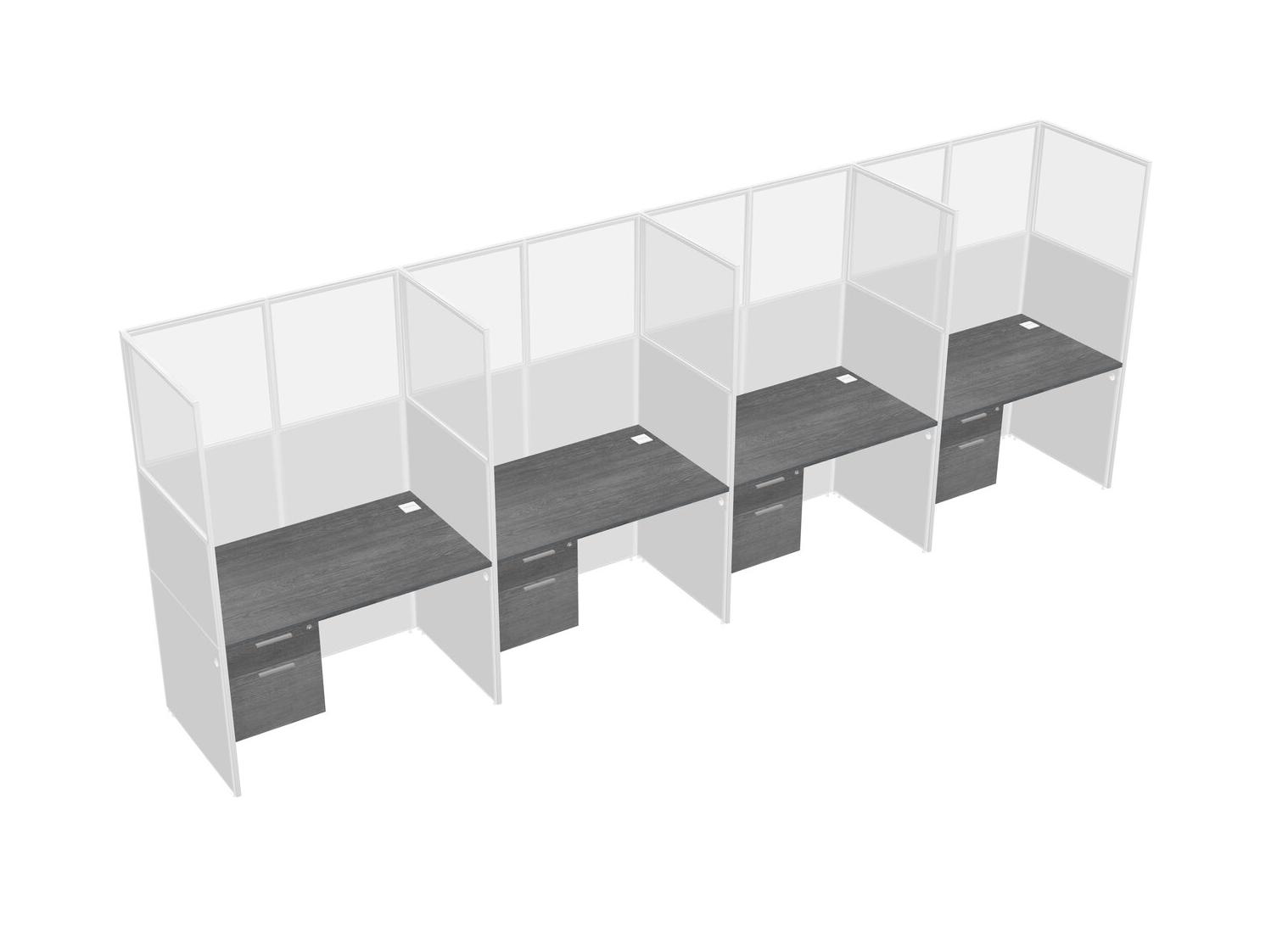 Grey Shared Rectangular Office Cubicle Panel System With Hanging Drawers For 4 Persons