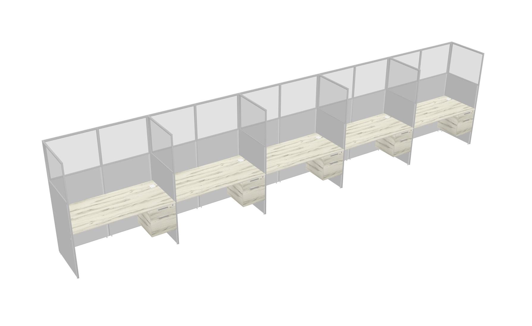 Heinne Holz Shared Rectangular Office Cubicle Panel System With Hanging Drawers For 5 Persons