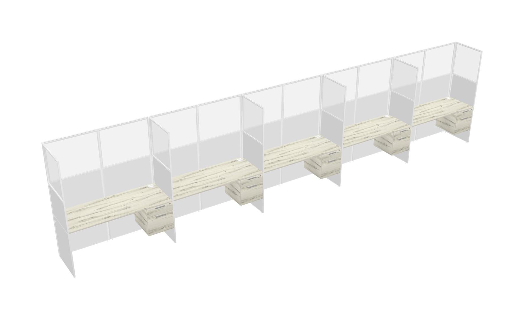 Heinne Holz Shared Rectangular Office Cubicle Panel System With Hanging Drawers For 5 Persons