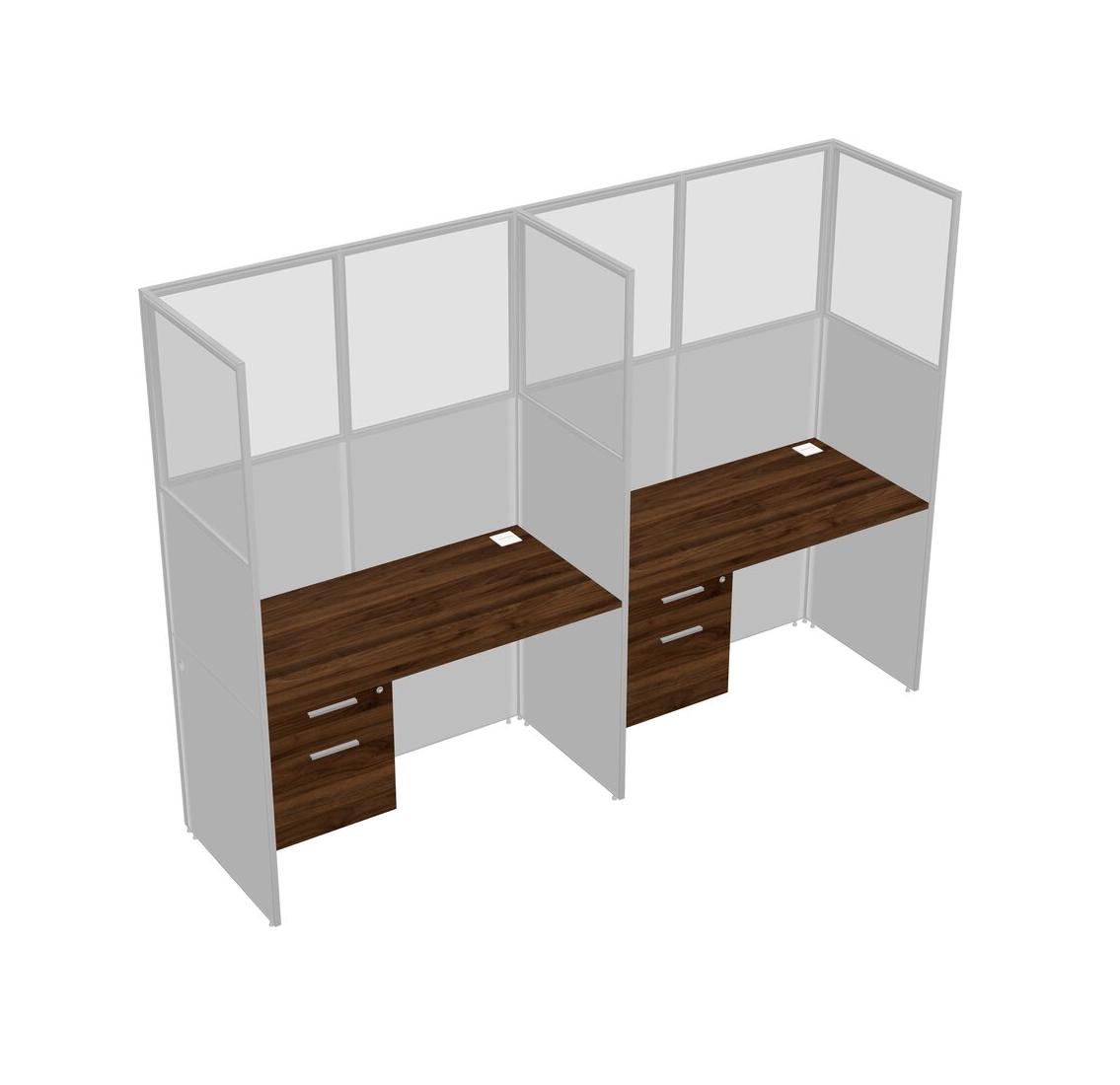Columbia Walnut Shared Rectangular Office Cubicle Panel System With Hanging Drawers For 2 Persons