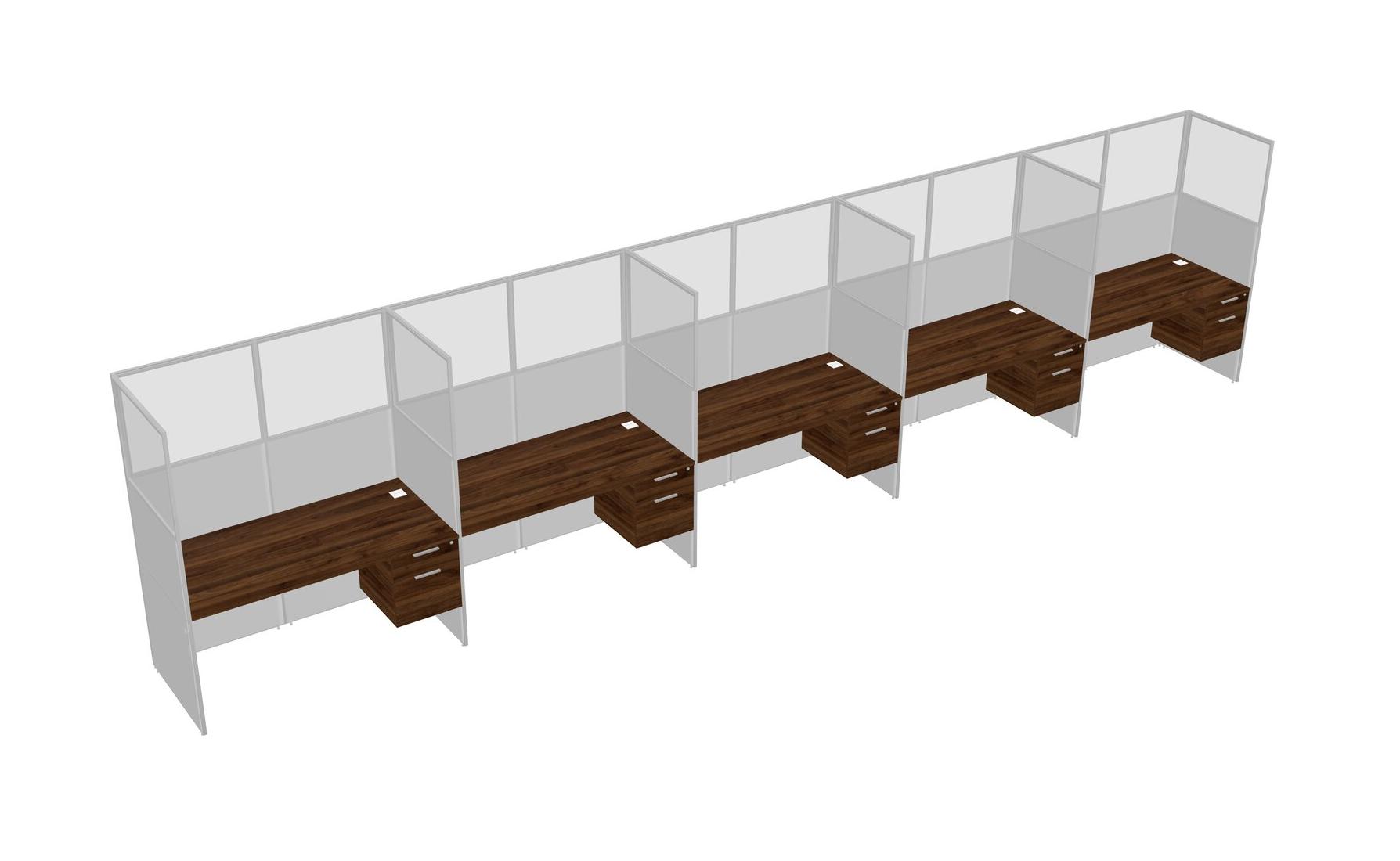 Columbia Walnut Shared Rectangular Office Cubicle Panel System With Hanging Drawers For 5 Persons
