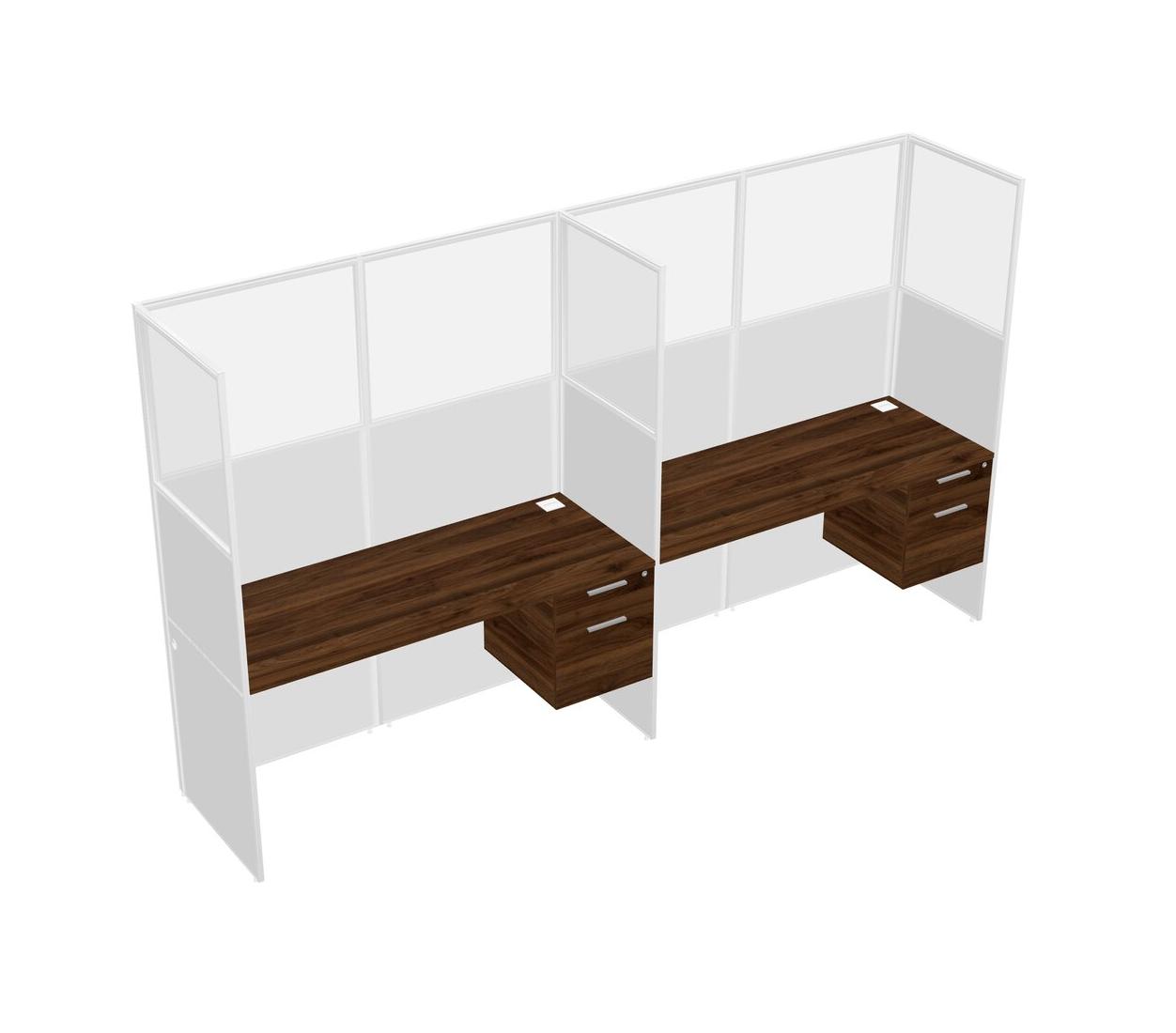 Columbia Walnut Shared Rectangular Office Cubicle Panel System With Hanging Drawers For 2 Persons