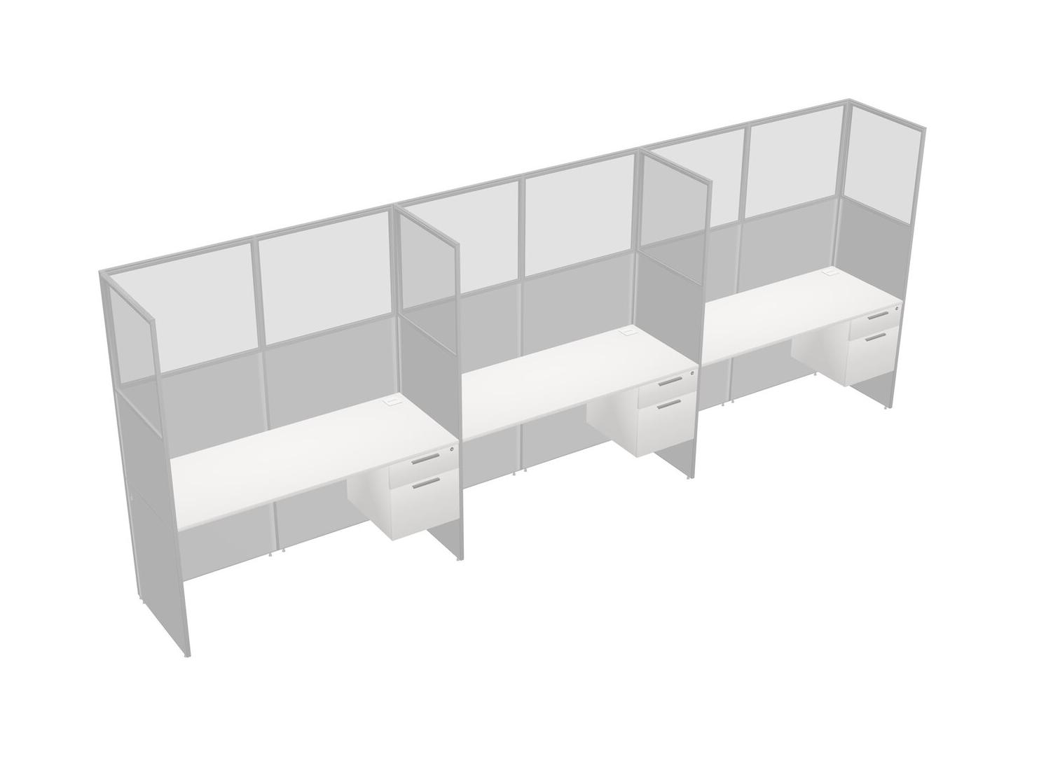 White Shared Rectangular Office Cubicle Panel System With Hanging Drawers For 3 Persons