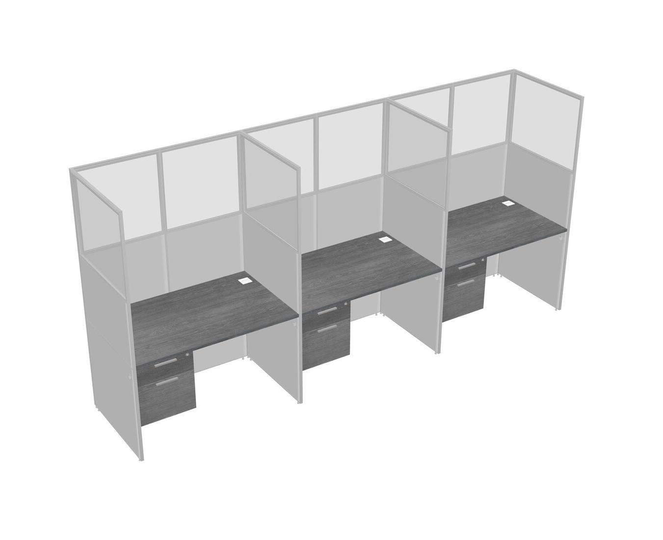 Grey Shared Rectangular Office Cubicle Panel System With Hanging Drawers For 3 Persons