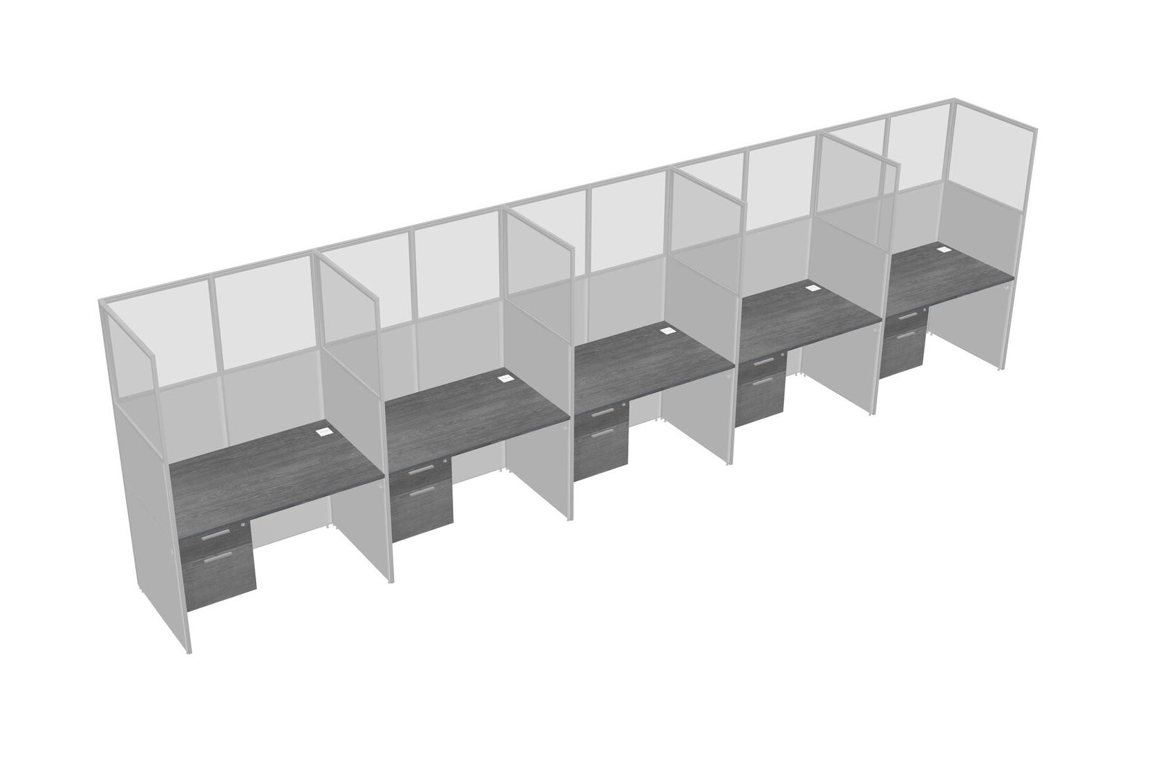 Grey Shared Rectangular Office Cubicle Panel System With Hanging Drawers For 5 Persons