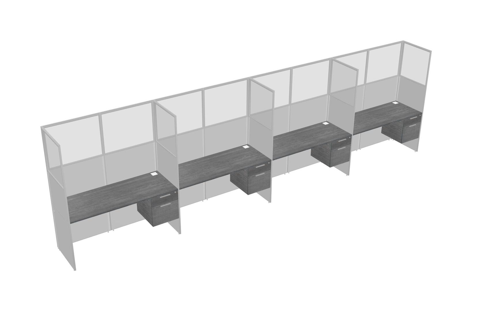 Grey Shared Rectangular Office Cubicle Panel System With Hanging Drawers For 4 Persons