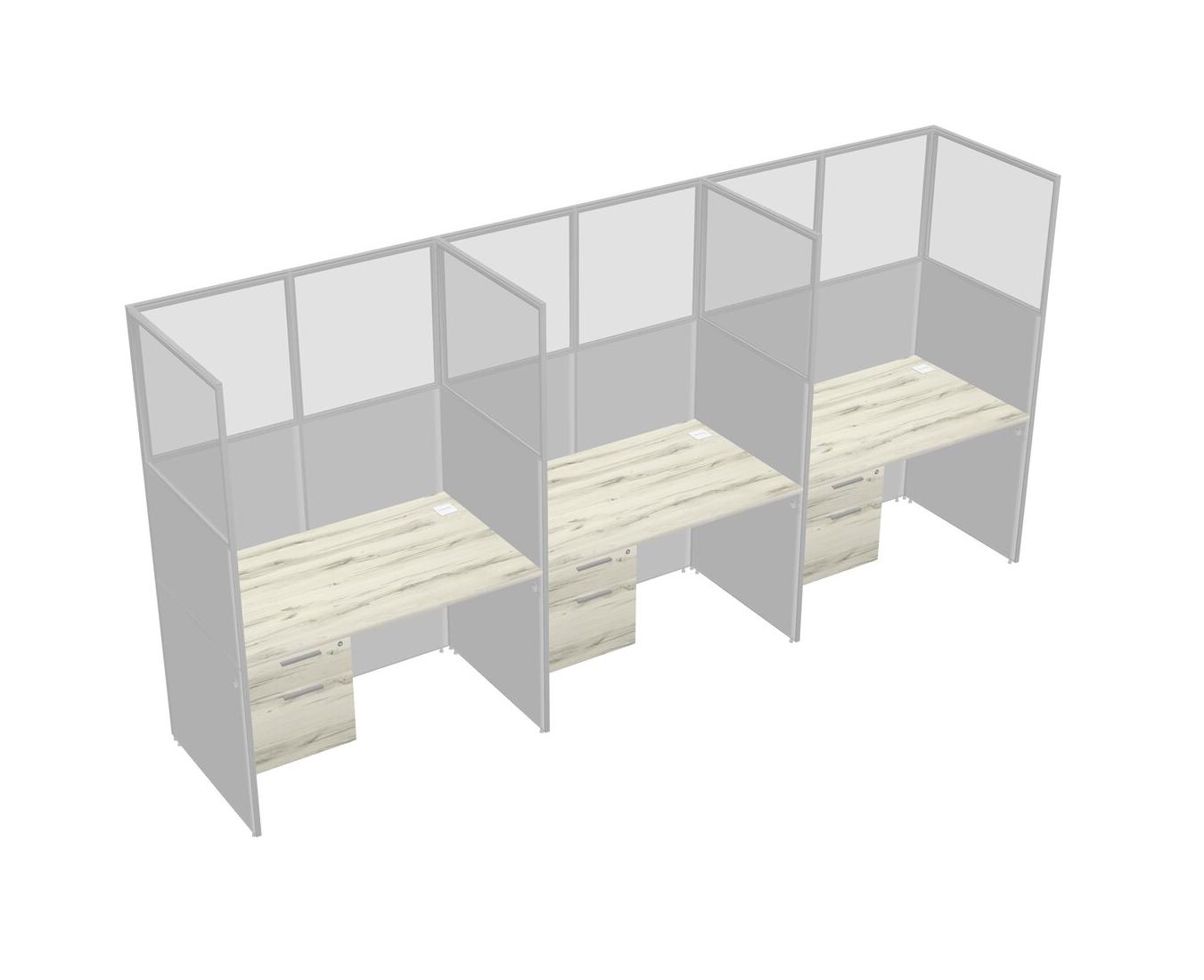 Heinne Holz Shared Rectangular Office Cubicle Panel System With Hanging Drawers For 3 Persons