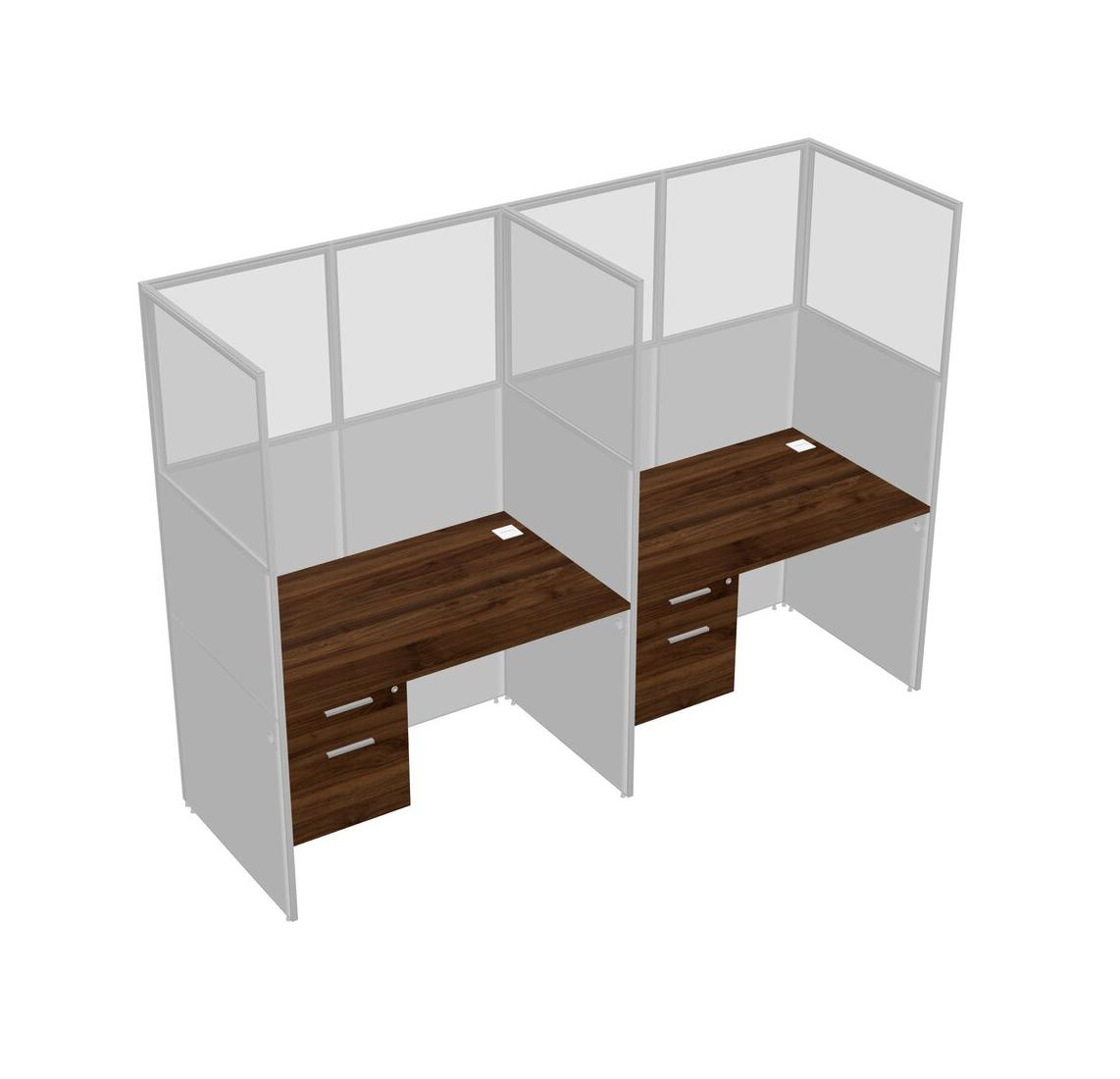 Columbia Walnut Shared Rectangular Office Cubicle Panel System With Hanging Drawers For 2 Persons