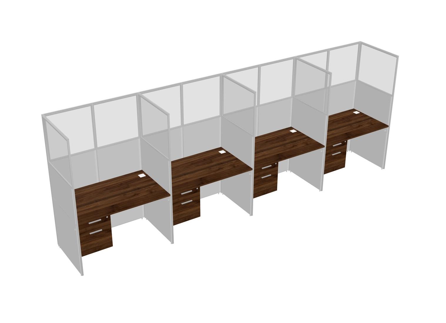Columbia Walnut Shared Rectangular Office Cubicle Panel System With Hanging Drawers For 4 Persons