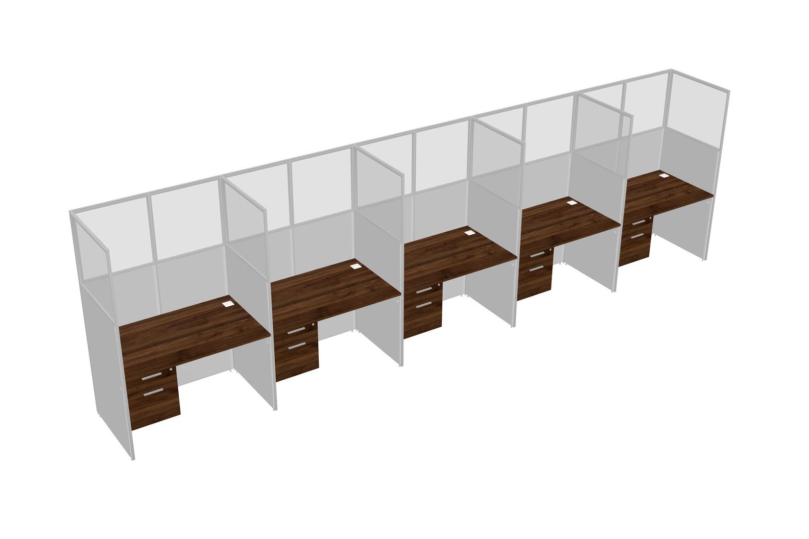 Columbia Walnut Shared Rectangular Office Cubicle Panel System With Hanging Drawers For 5 Persons