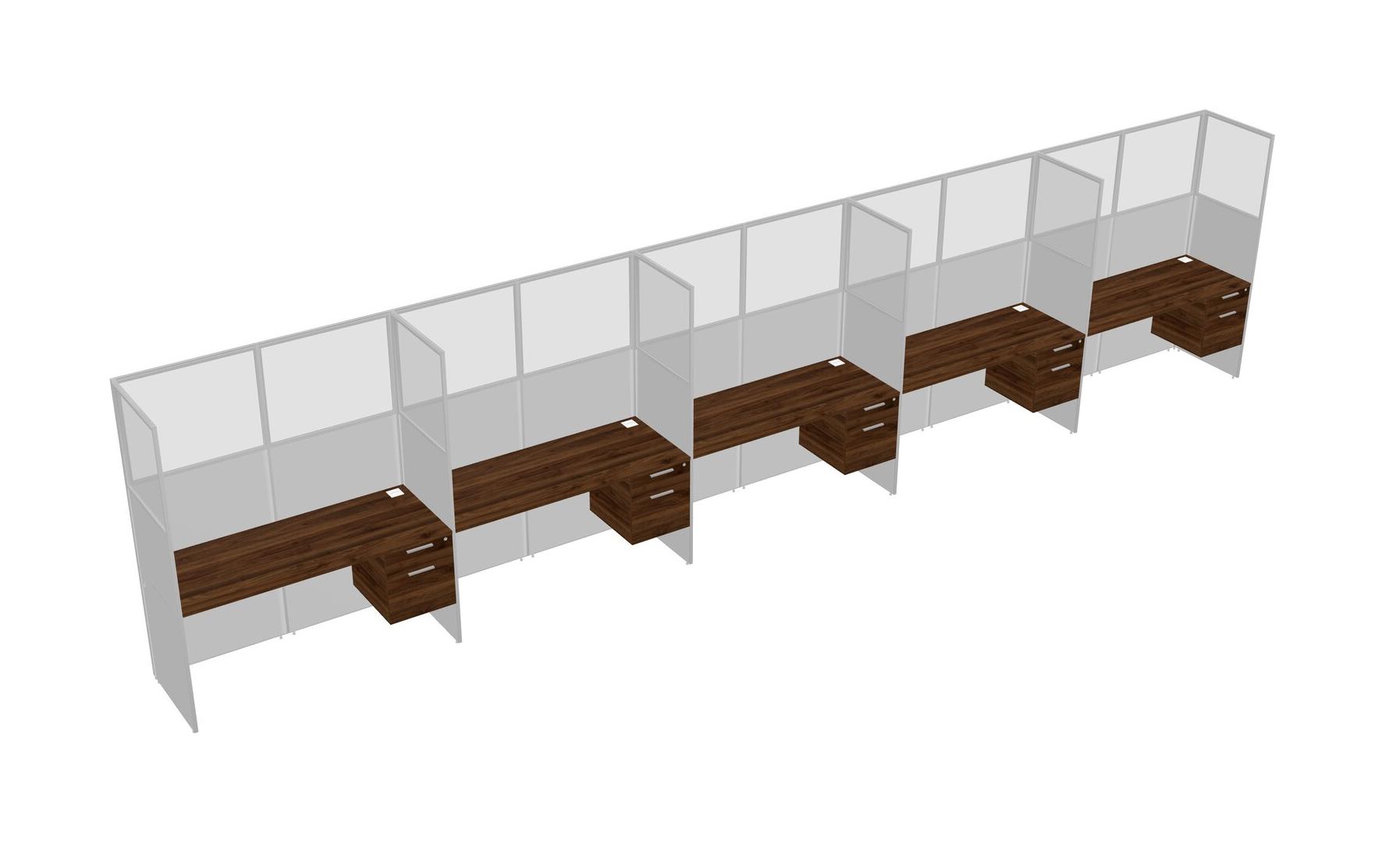 Columbia Walnut Shared Rectangular Office Cubicle Panel System With Hanging Drawers For 5 Persons
