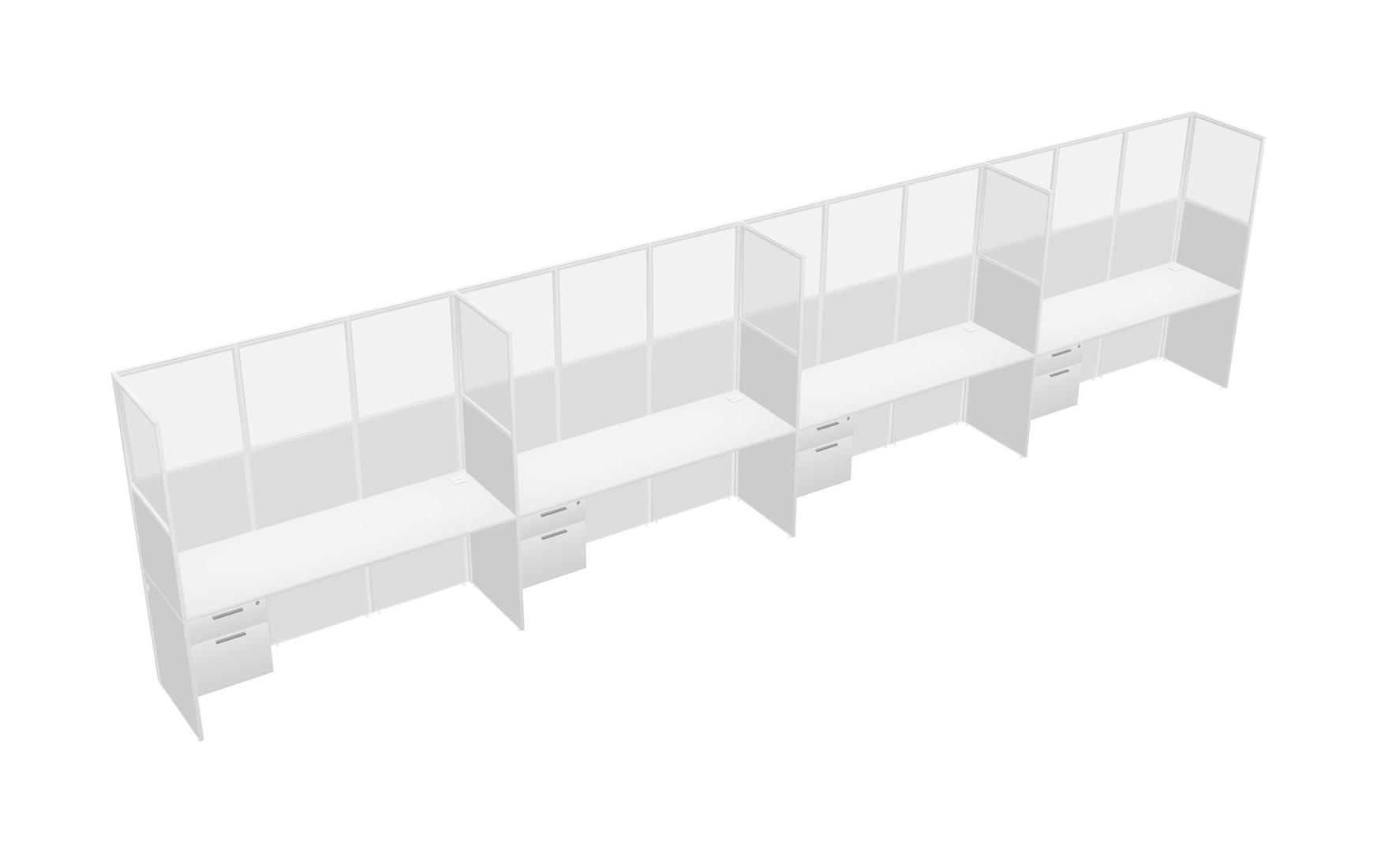 White Shared Rectangular Office Cubicle Panel System With Hanging Drawers For 4 Persons