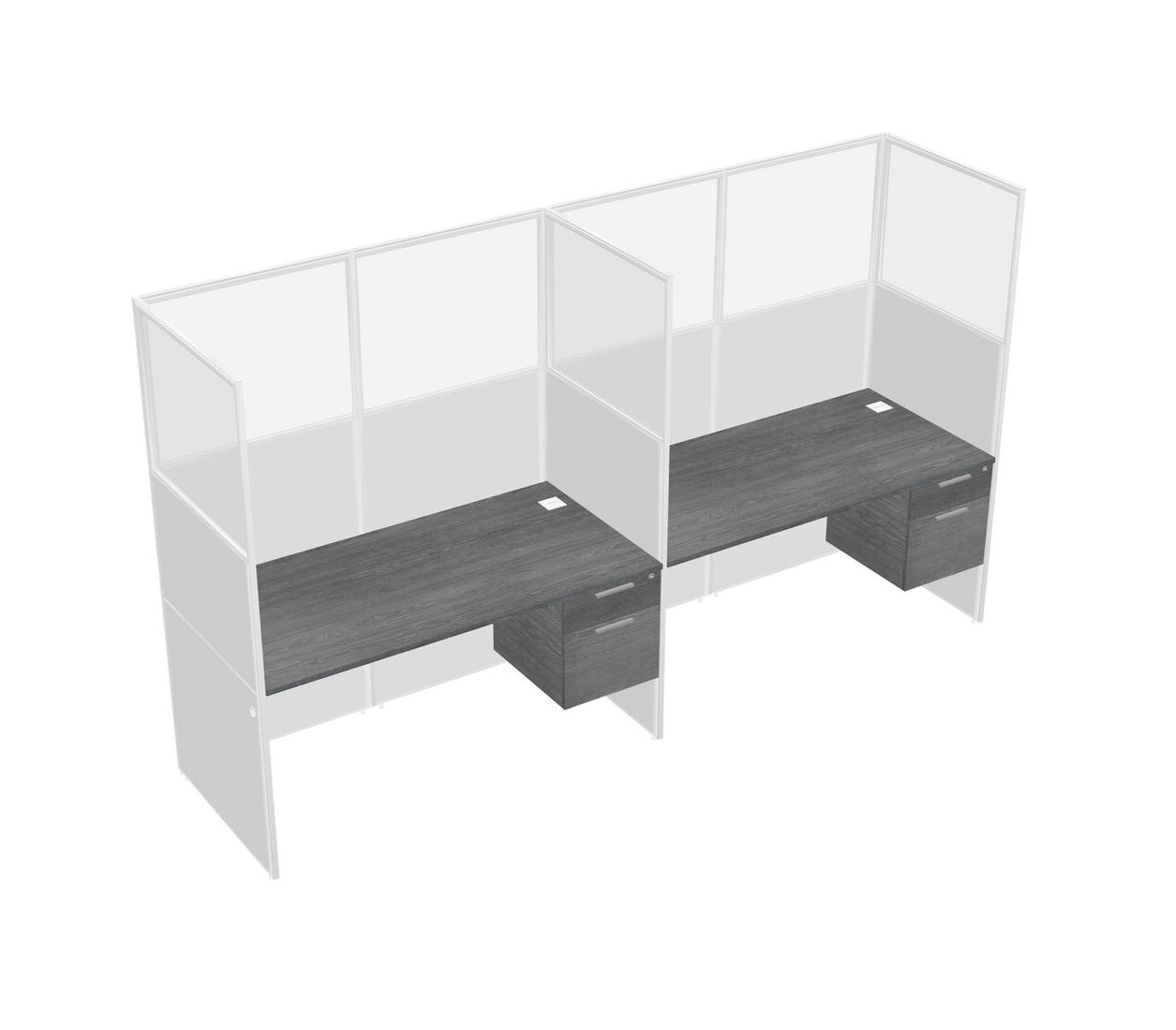 Grey Shared Rectangular Office Cubicle Panel System With Hanging Drawers For 2 Persons