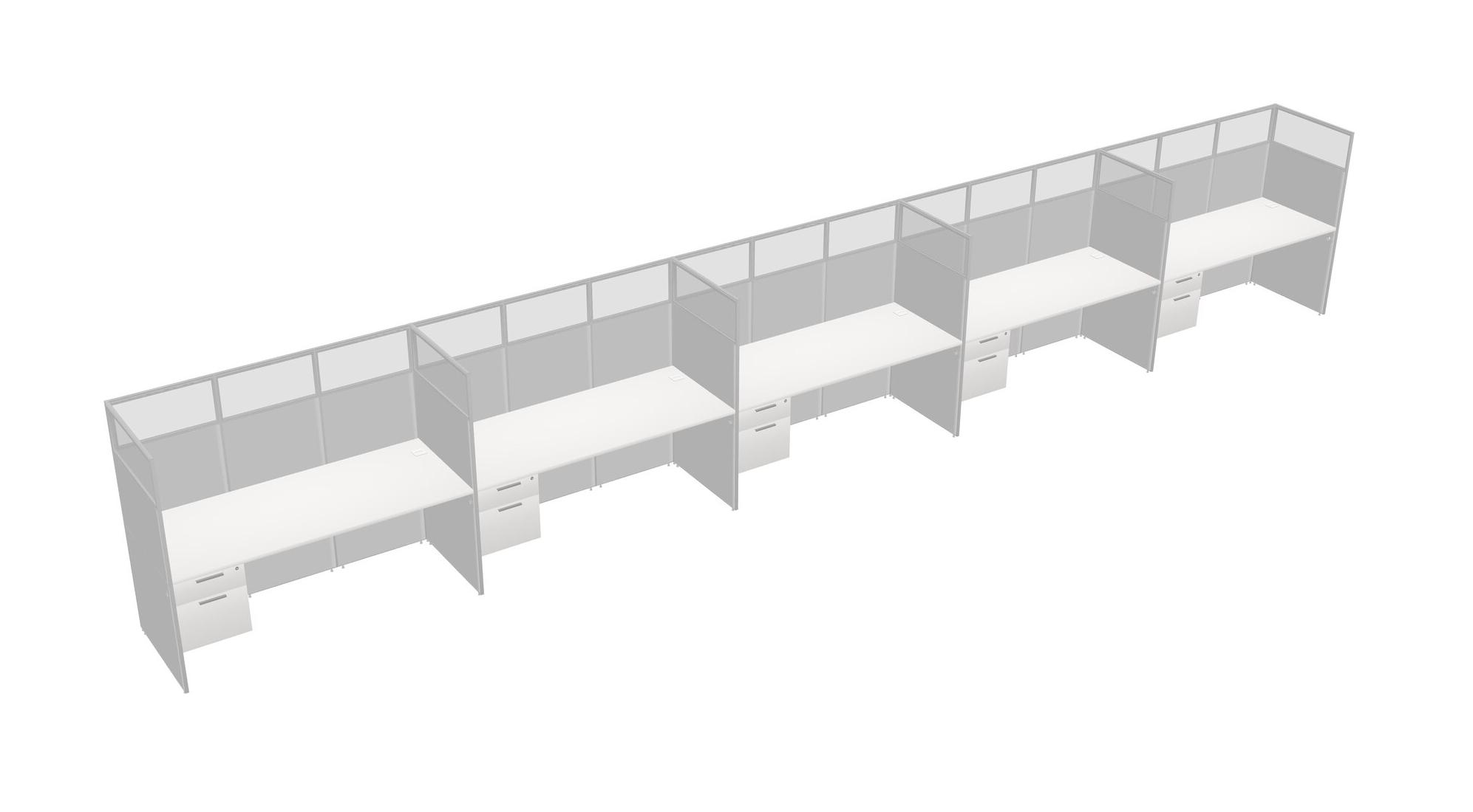 White Shared Rectangular Office Cubicle Panel System With Hanging Drawers For 5 Persons