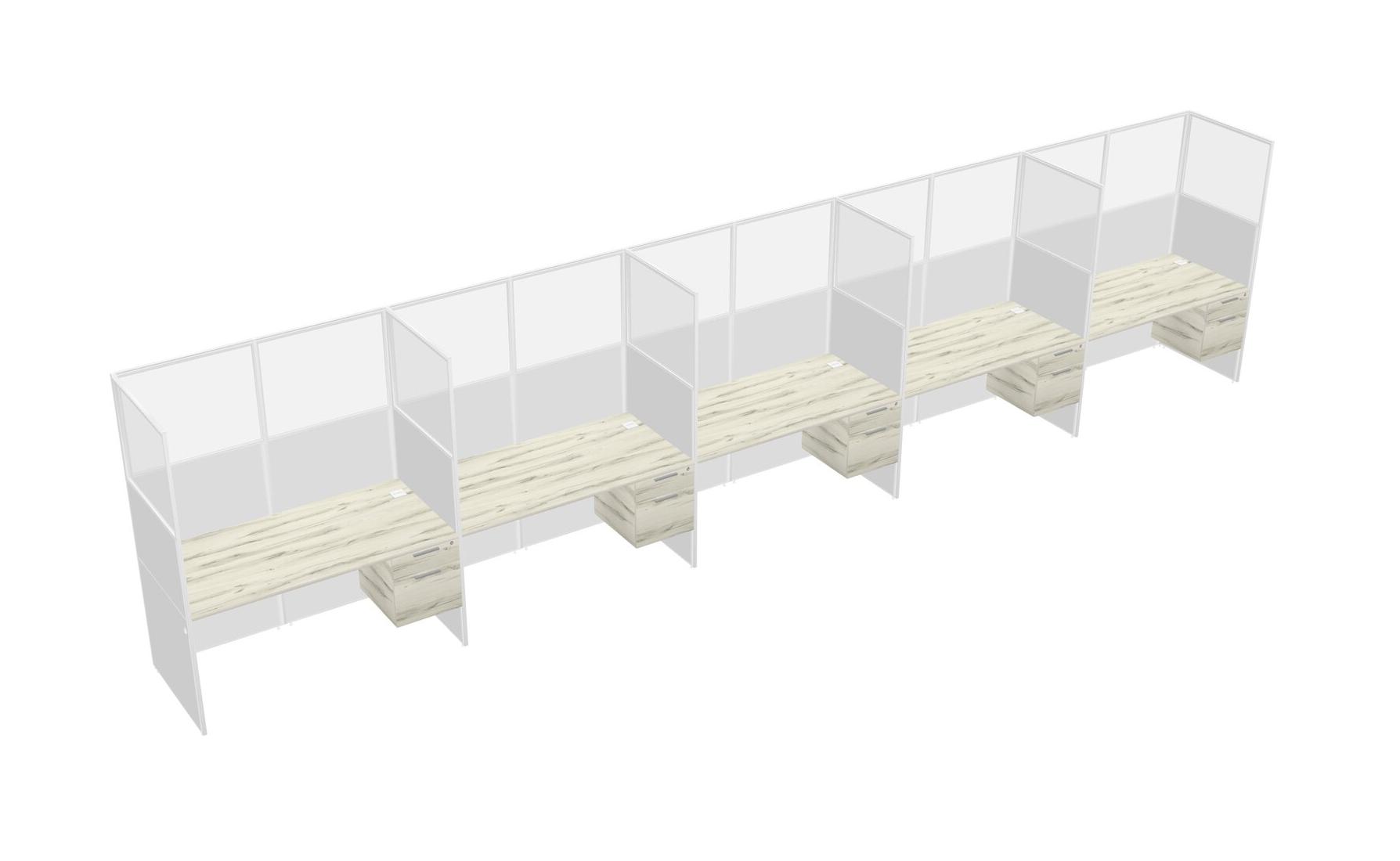 Heinne Holz Shared Rectangular Office Cubicle Panel System With Hanging Drawers For 5 Persons