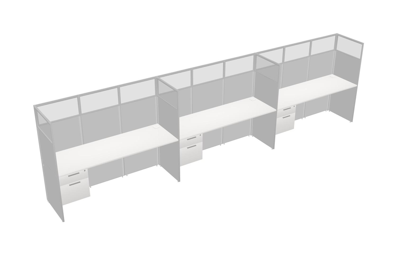 White Shared Rectangular Office Cubicle Panel System With Hanging Drawers For 3 Persons