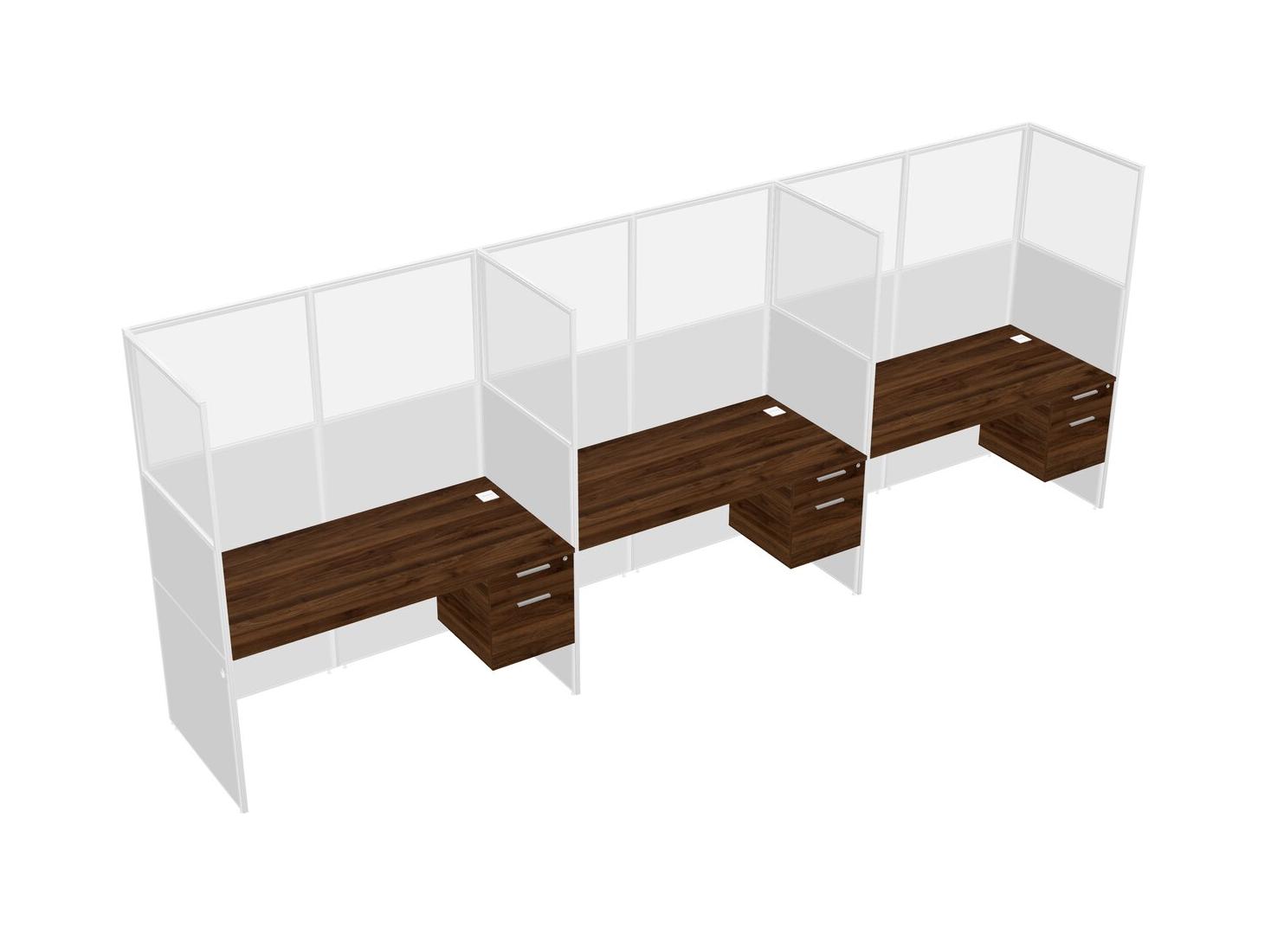 Columbia Walnut Shared Rectangular Office Cubicle Panel System With Hanging Drawers For 3 Persons