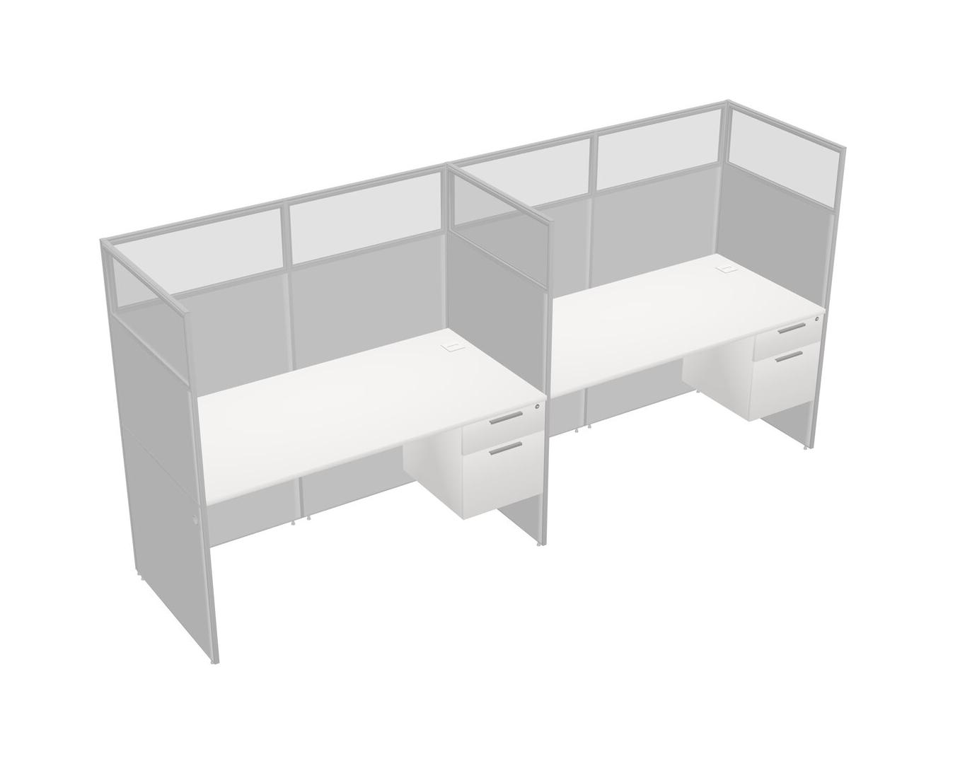 White Shared Rectangular Office Cubicle Panel System With Hanging Drawers For 2 Persons