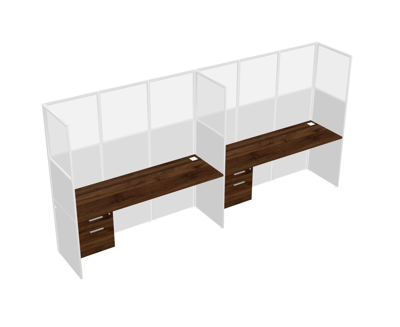 Columbia Walnut Shared Rectangular Office Cubicle Panel System With Hanging Drawers For 2 Persons