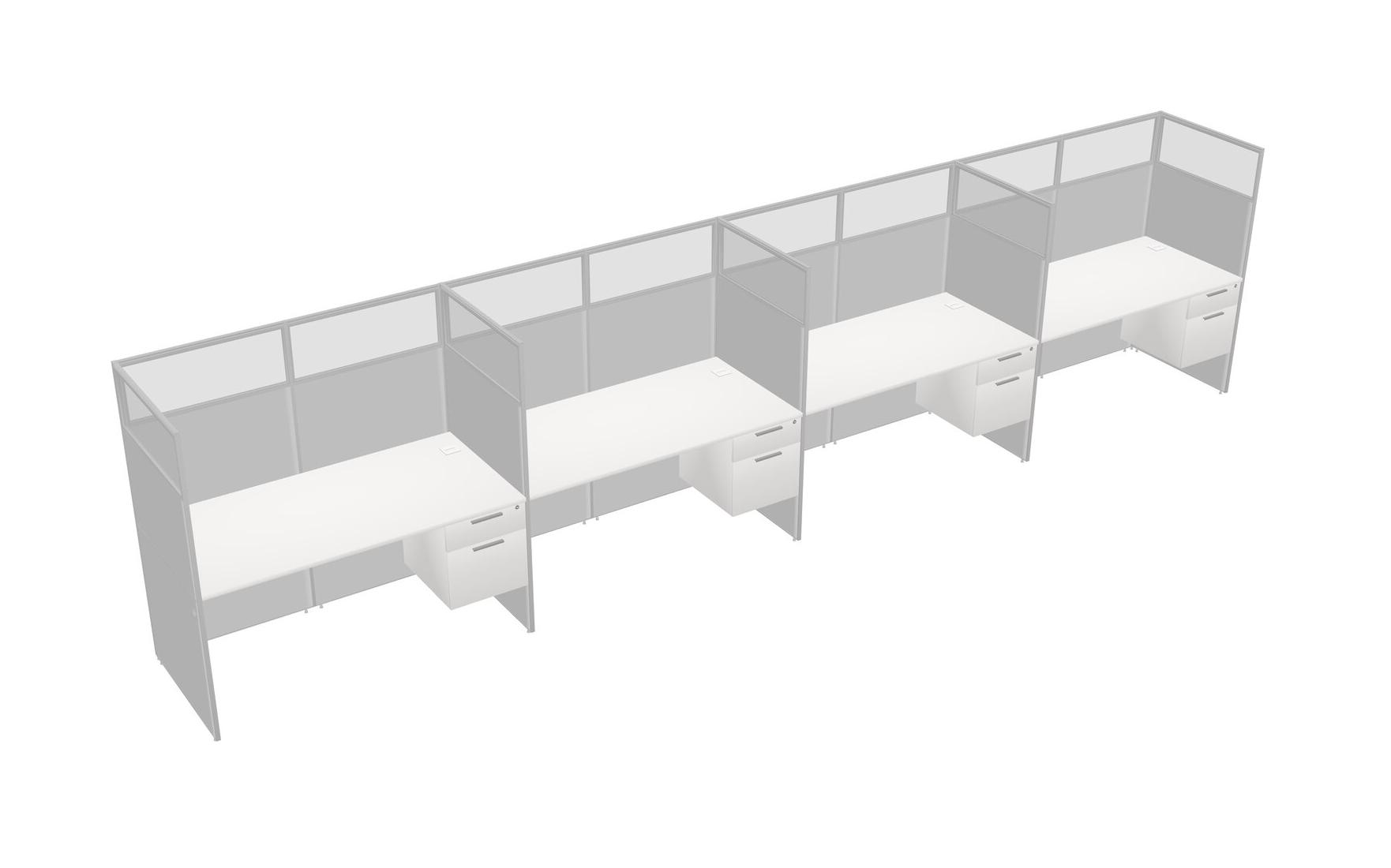 White Shared Rectangular Office Cubicle Panel System With Hanging Drawers For 4 Persons