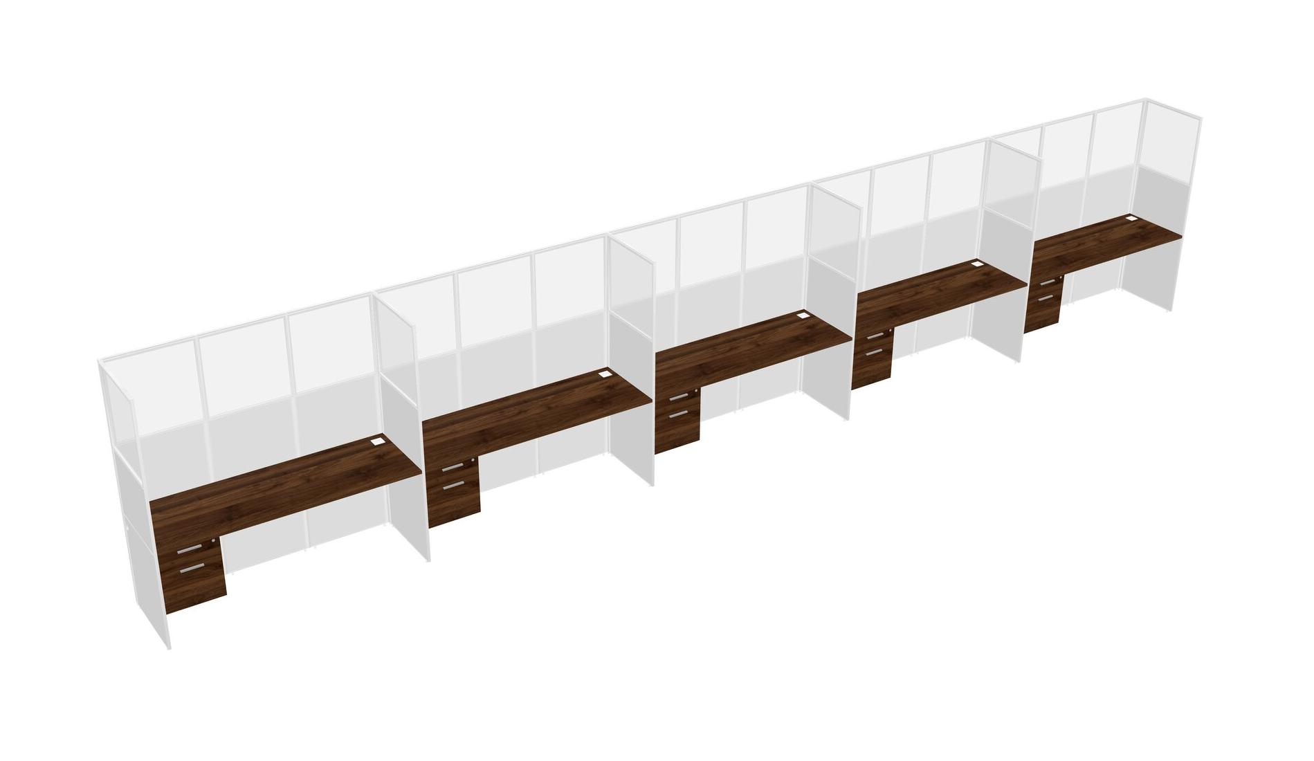 Columbia Walnut Shared Rectangular Office Cubicle Panel System With Hanging Drawers For 5 Persons