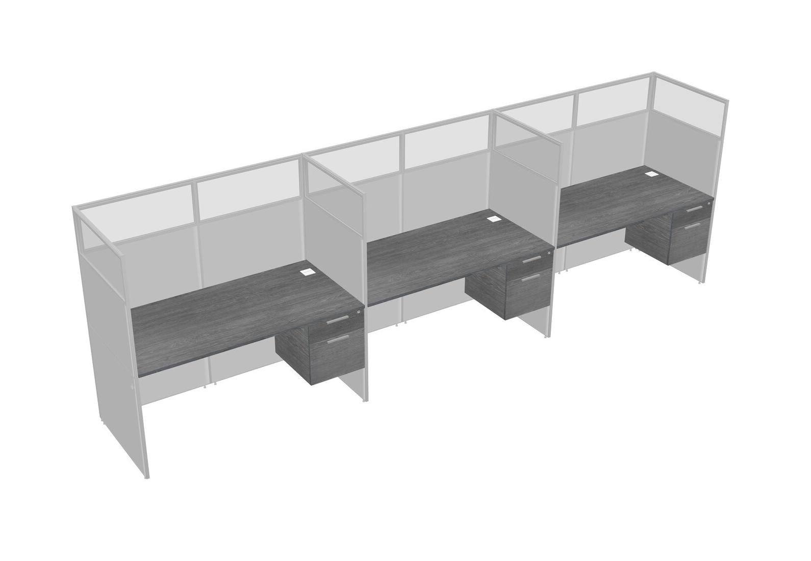Grey Shared Rectangular Office Cubicle Panel System With Hanging Drawers For 3 Persons