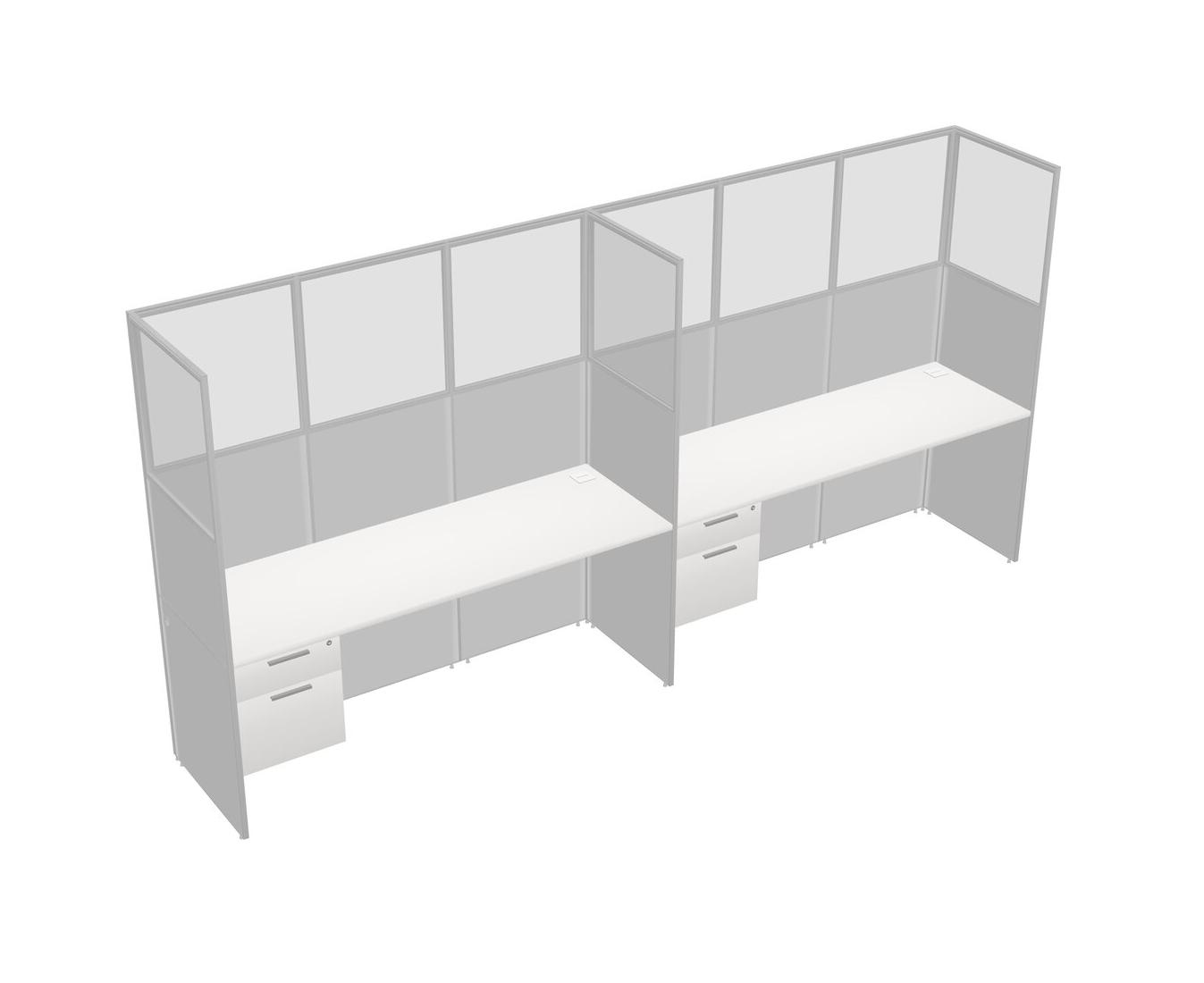 White Shared Rectangular Office Cubicle Panel System With Hanging Drawers For 2 Persons