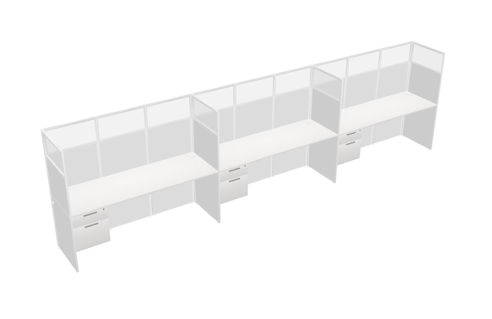 White Shared Rectangular Office Cubicle Panel System With Hanging Drawers For 3 Persons