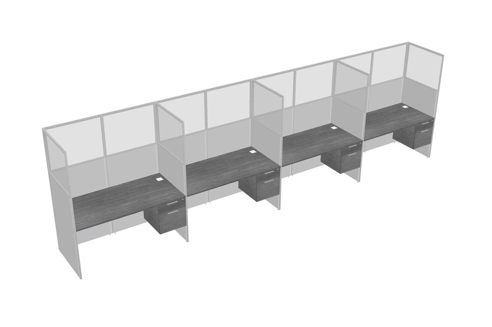 Grey Shared Rectangular Office Cubicle Panel System With Hanging Drawers For 4 Persons