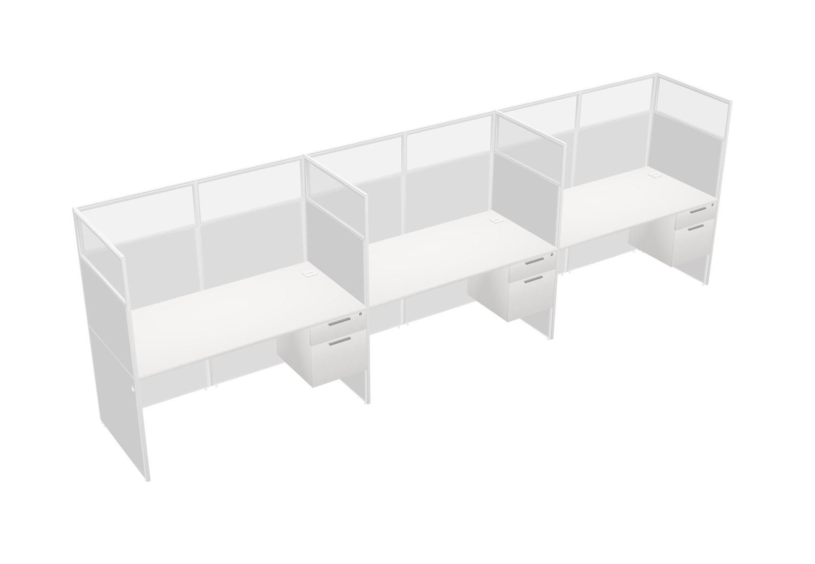 White Shared Rectangular Office Cubicle Panel System With Hanging Drawers For 3 Persons