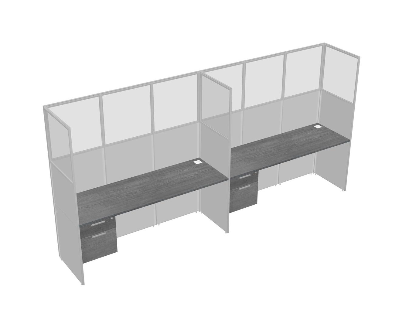 Grey Shared Rectangular Office Cubicle Panel System With Hanging Drawers For 2 Persons