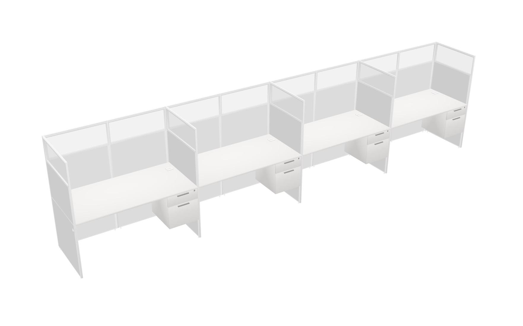 White Shared Rectangular Office Cubicle Panel System With Hanging Drawers For 4 Persons