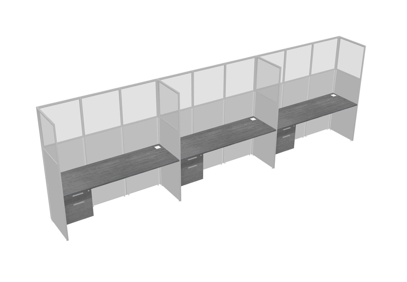 Grey Shared Rectangular Office Cubicle Panel System With Hanging Drawers For 3 Persons