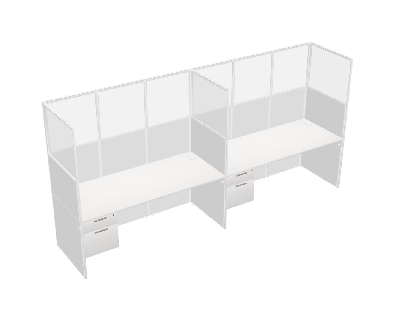White Shared Rectangular Office Cubicle Panel System With Hanging Drawers For 2 Persons