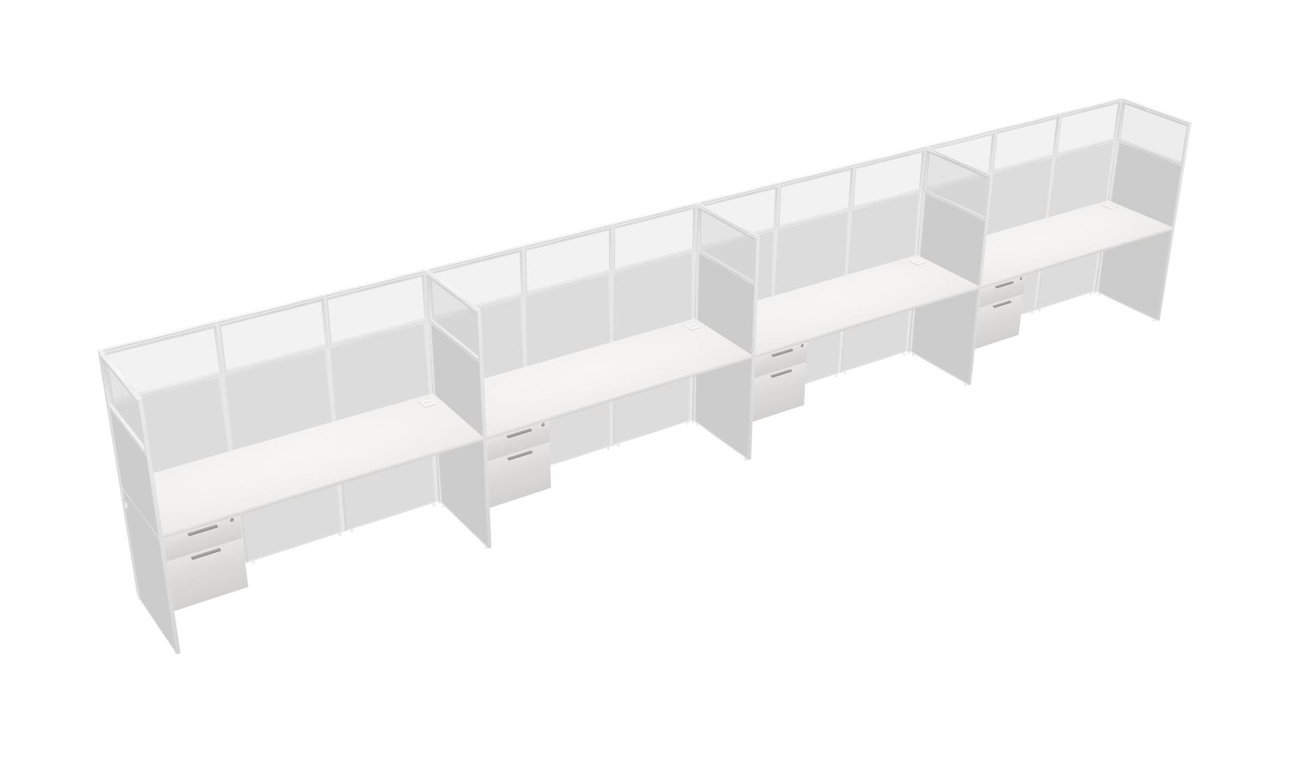 White Shared Rectangular Office Cubicle Panel System With Hanging Drawers For 4 Persons