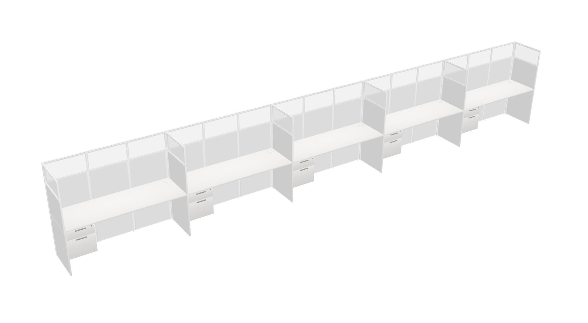 White Shared Rectangular Office Cubicle Panel System With Hanging Drawers For 5 Persons