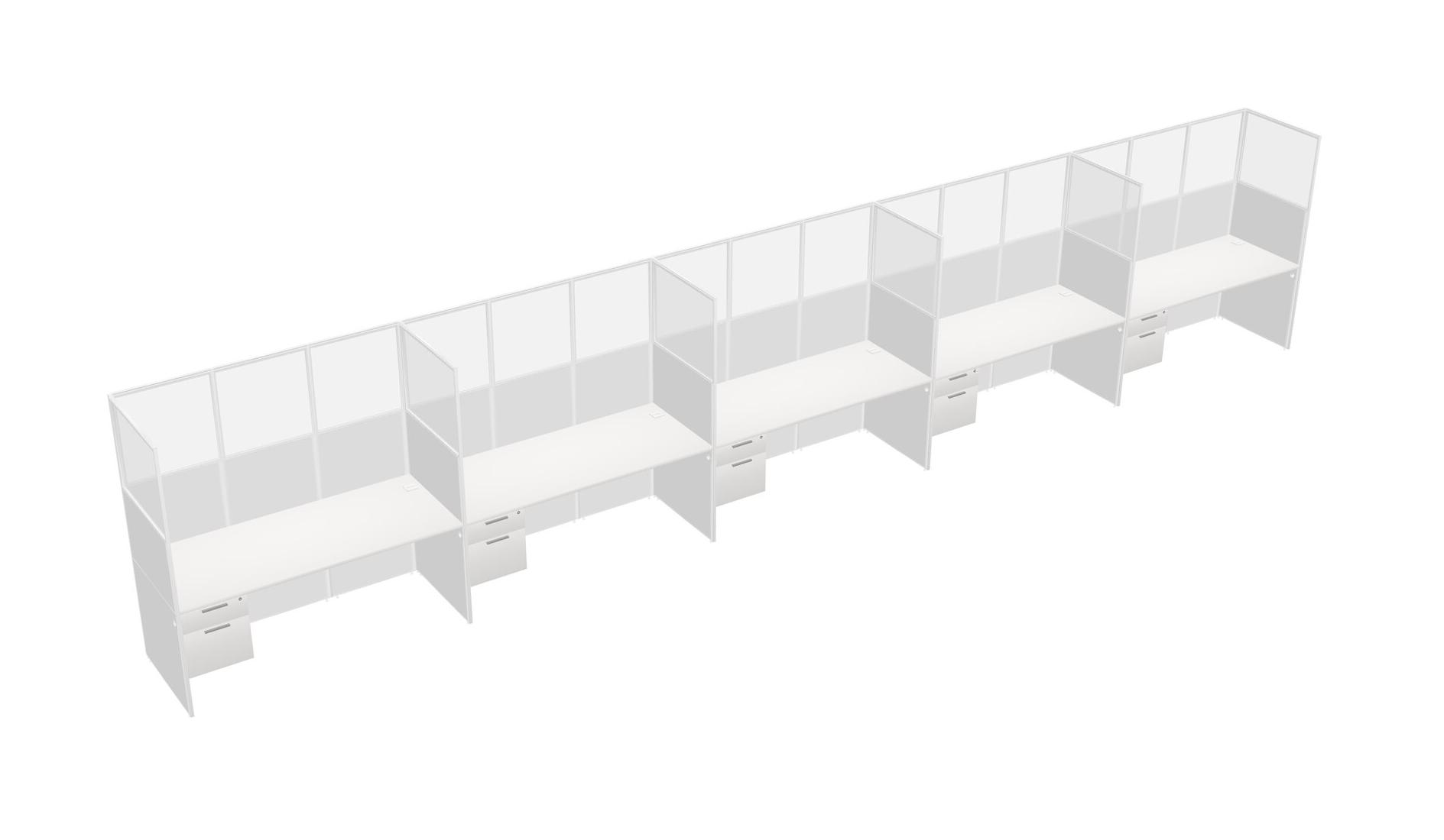 White Shared Rectangular Office Cubicle Panel System With Hanging Drawers For 5 Persons