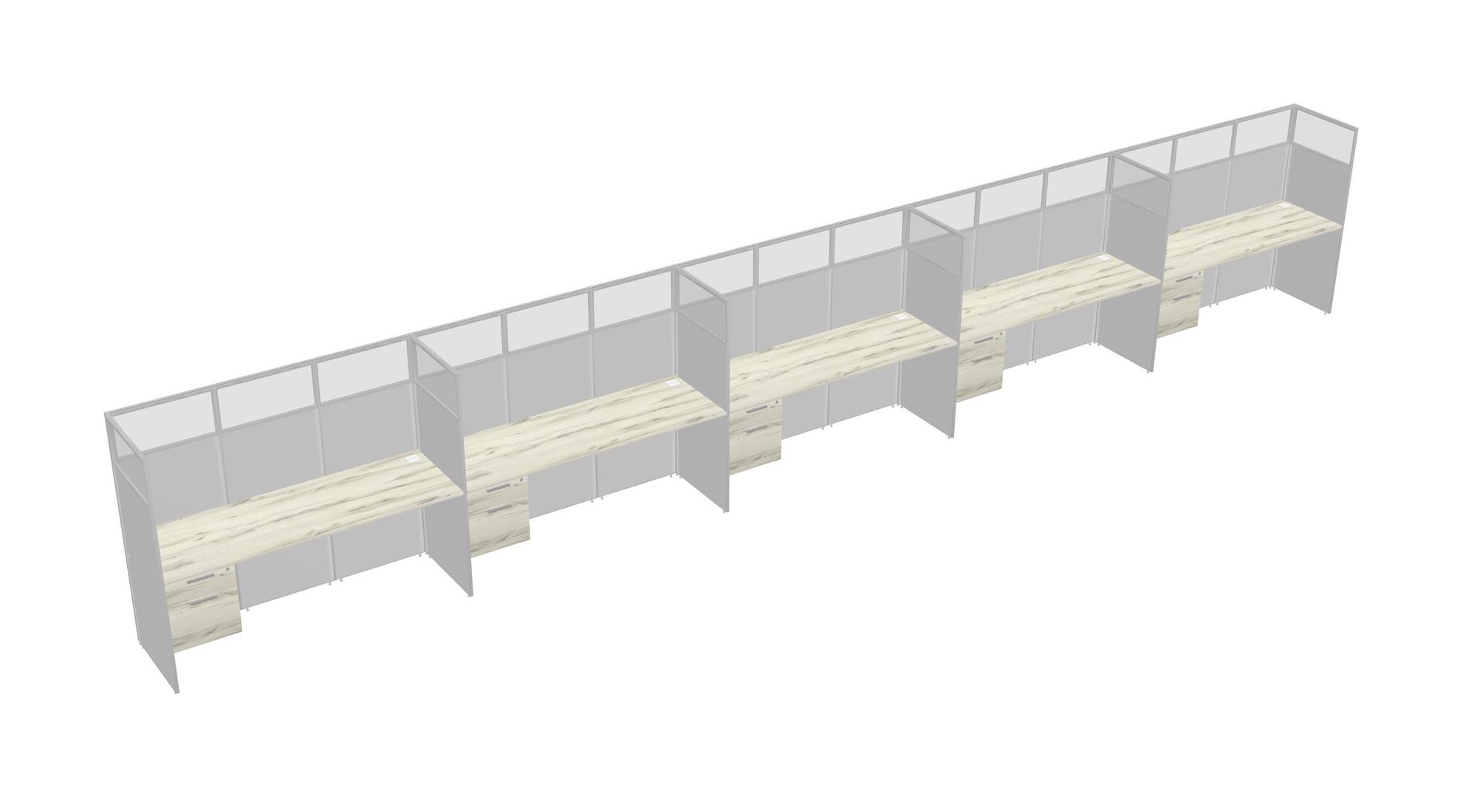 Heinne Holz Shared Rectangular Office Cubicle Panel System With Hanging Drawers For 5 Persons
